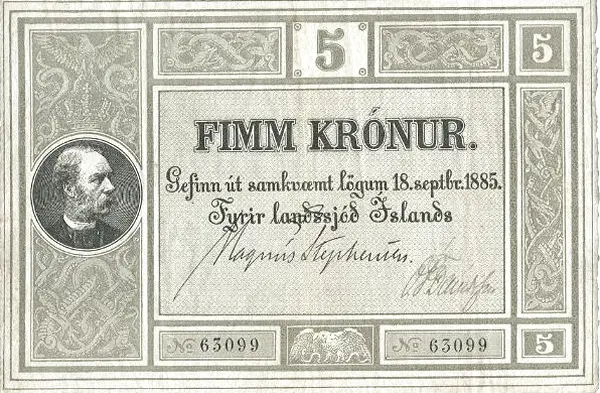 5 Krónur – Iceland’s First Banknote (1886)