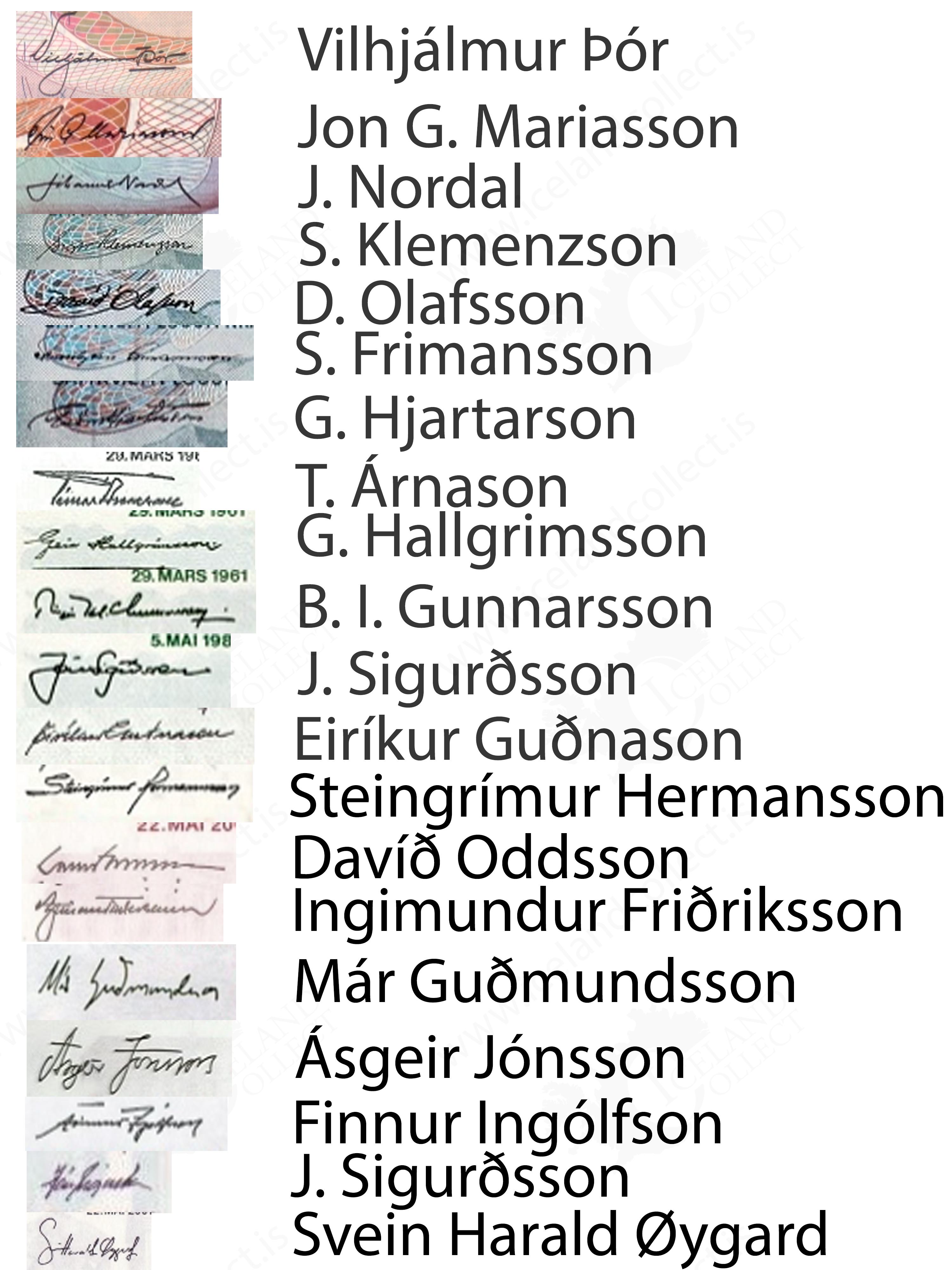 Signatures guide for Icelandic currency of the period