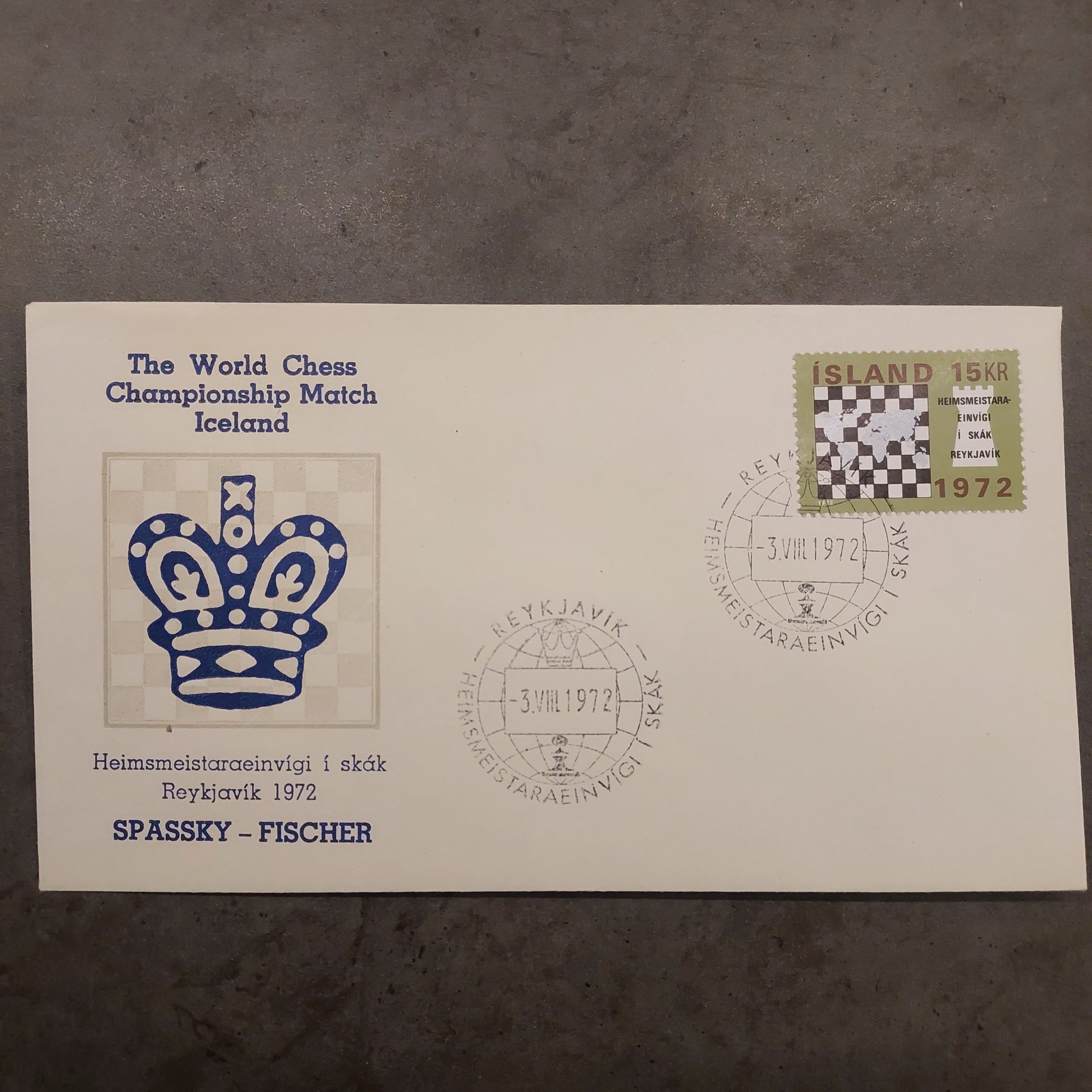 World chess championship 1972 – Bobby Fischer vs. Spassky large postcard Iceland