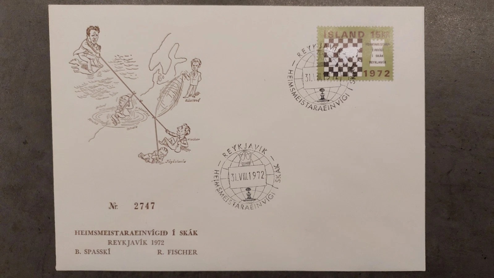 World chess championship 1972 – Bobby Fischer vs. Spassky large postcard Iceland