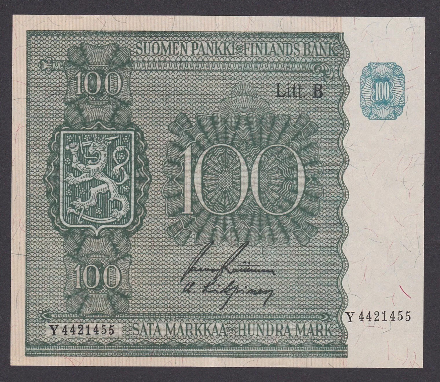 1945 Finland 100 Markkaa Banknote quantity