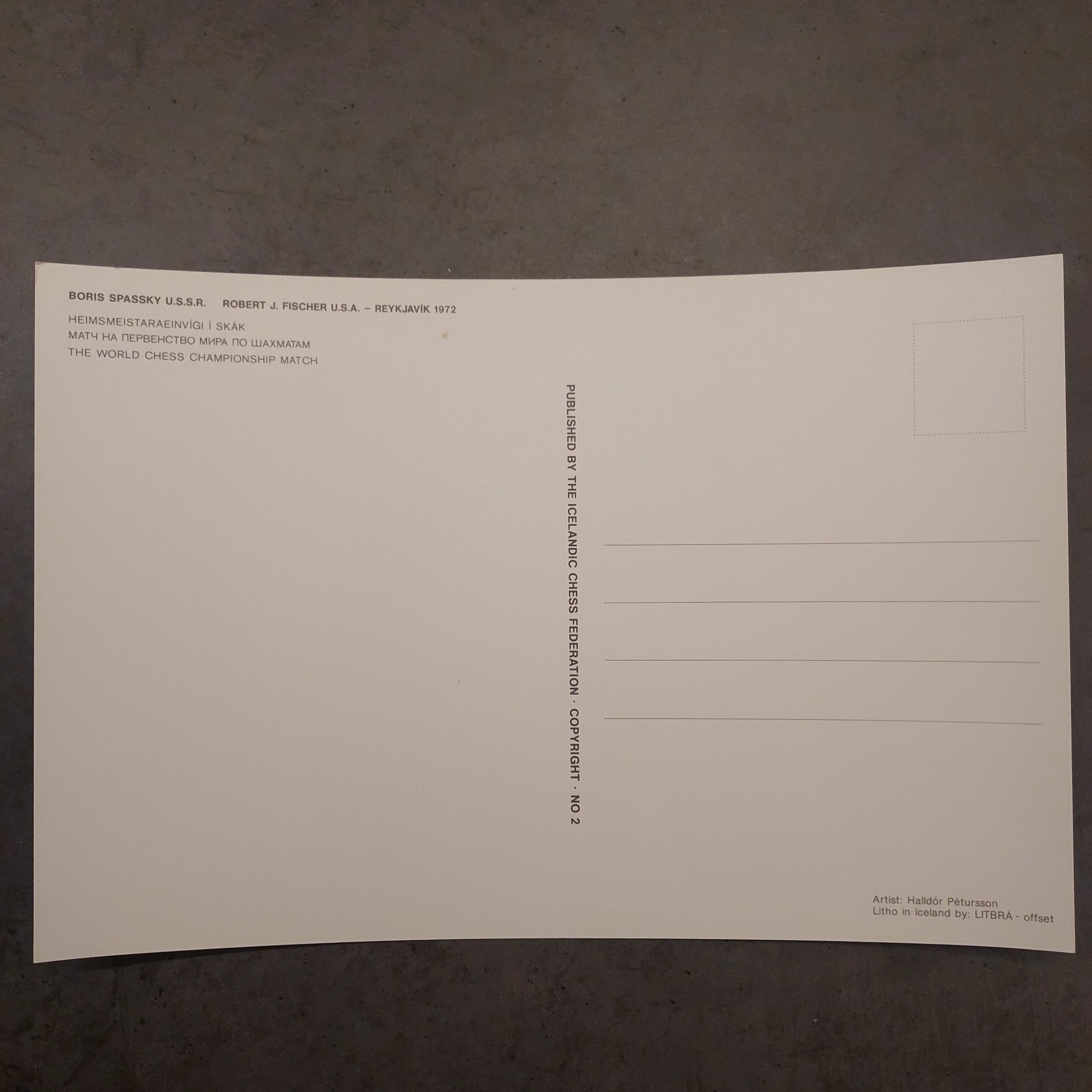 1972 Fischer Spassky postcard Halldór Pétursson