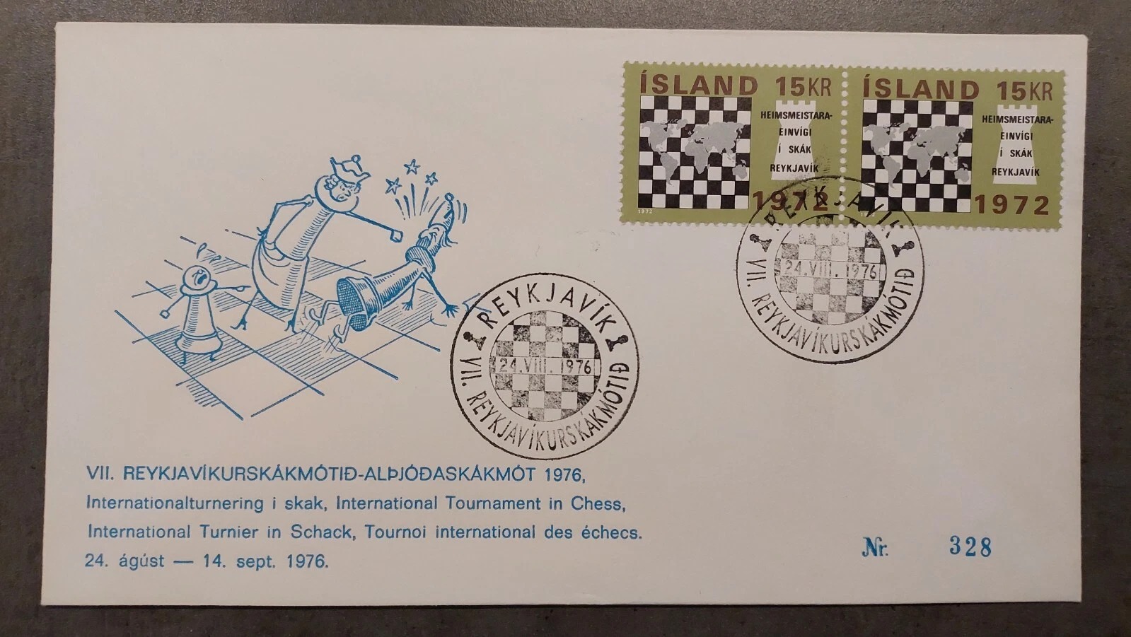 1976 – Reykjavik Chess SKAK FYI Envelope With Stamps Iceland. quantity