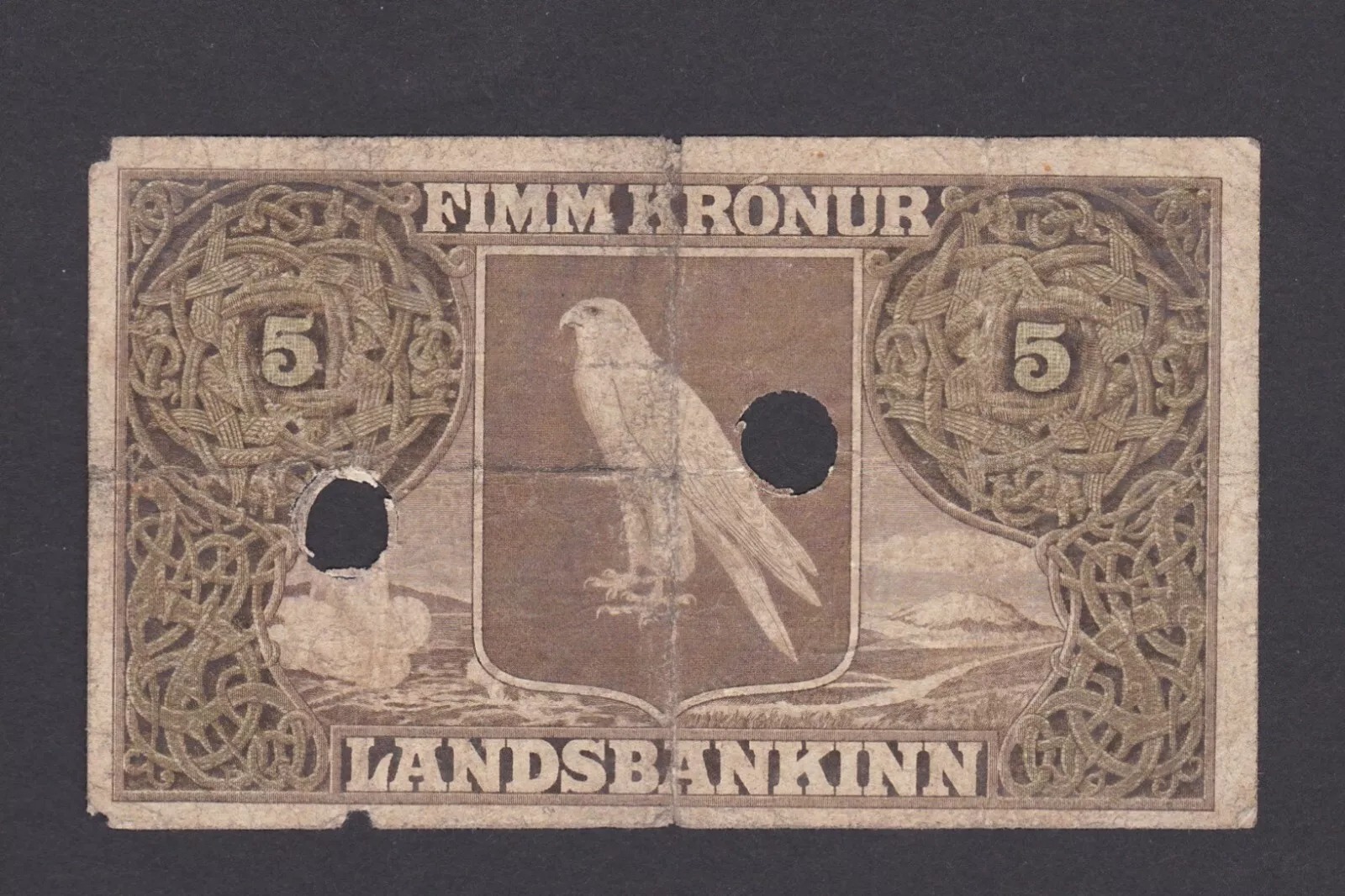 5 Kronur 1885-1900 (1900-06), Two hole punch cancelled, Iceland
