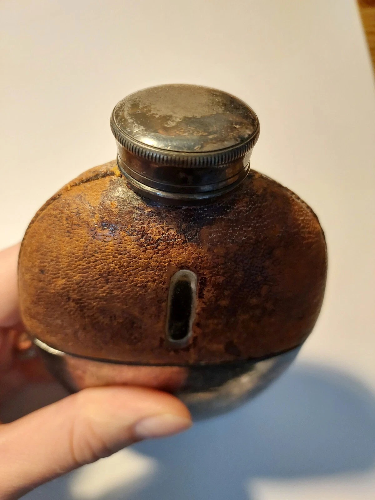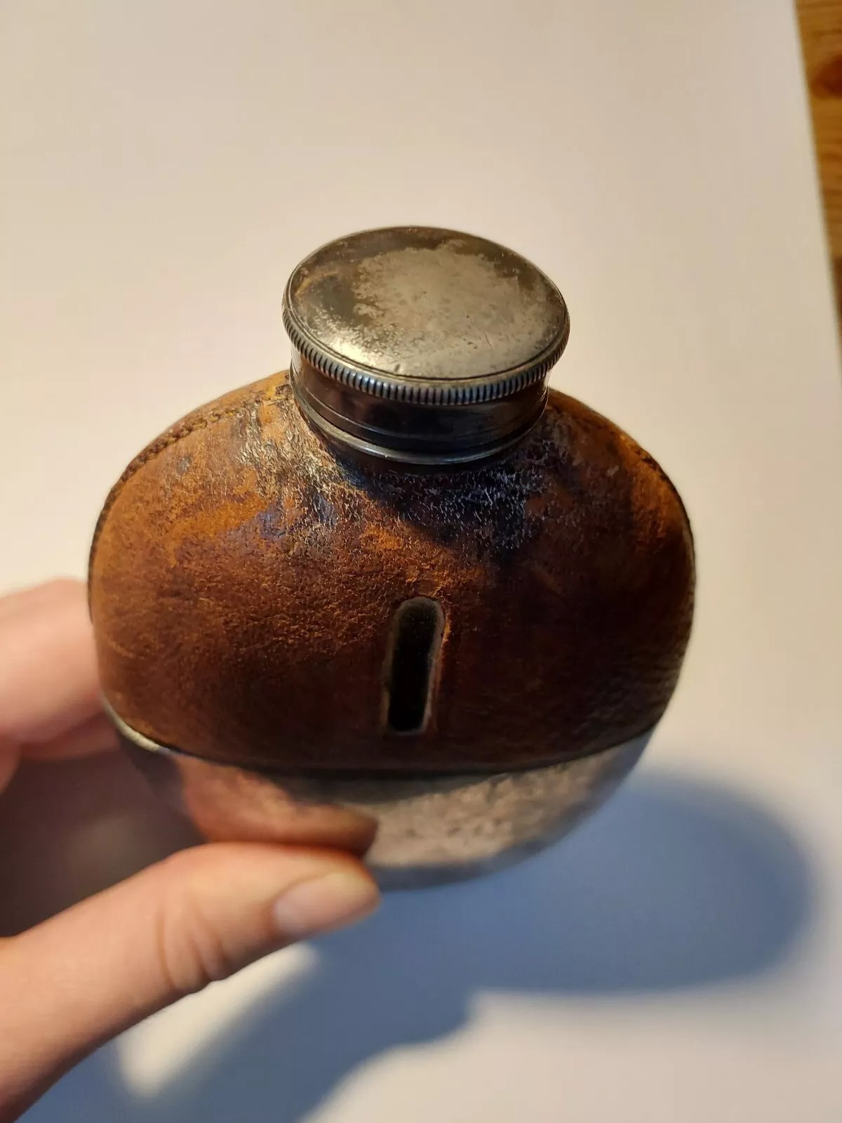 Antique James Dixon & Sons Sheffield Silver Plate Glass Leather Flask England quantity