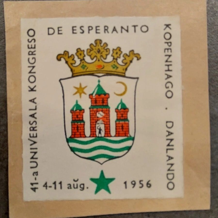 In August 1956, thousands gathered in Copenhagen for the 41st Universal Esperanto Congress—celebrating the dream of a neutral global language. This vintage cinderella label features the city’s three-tower coat of arms with the green Esperanto star, marking the dates 4-11 Aug.