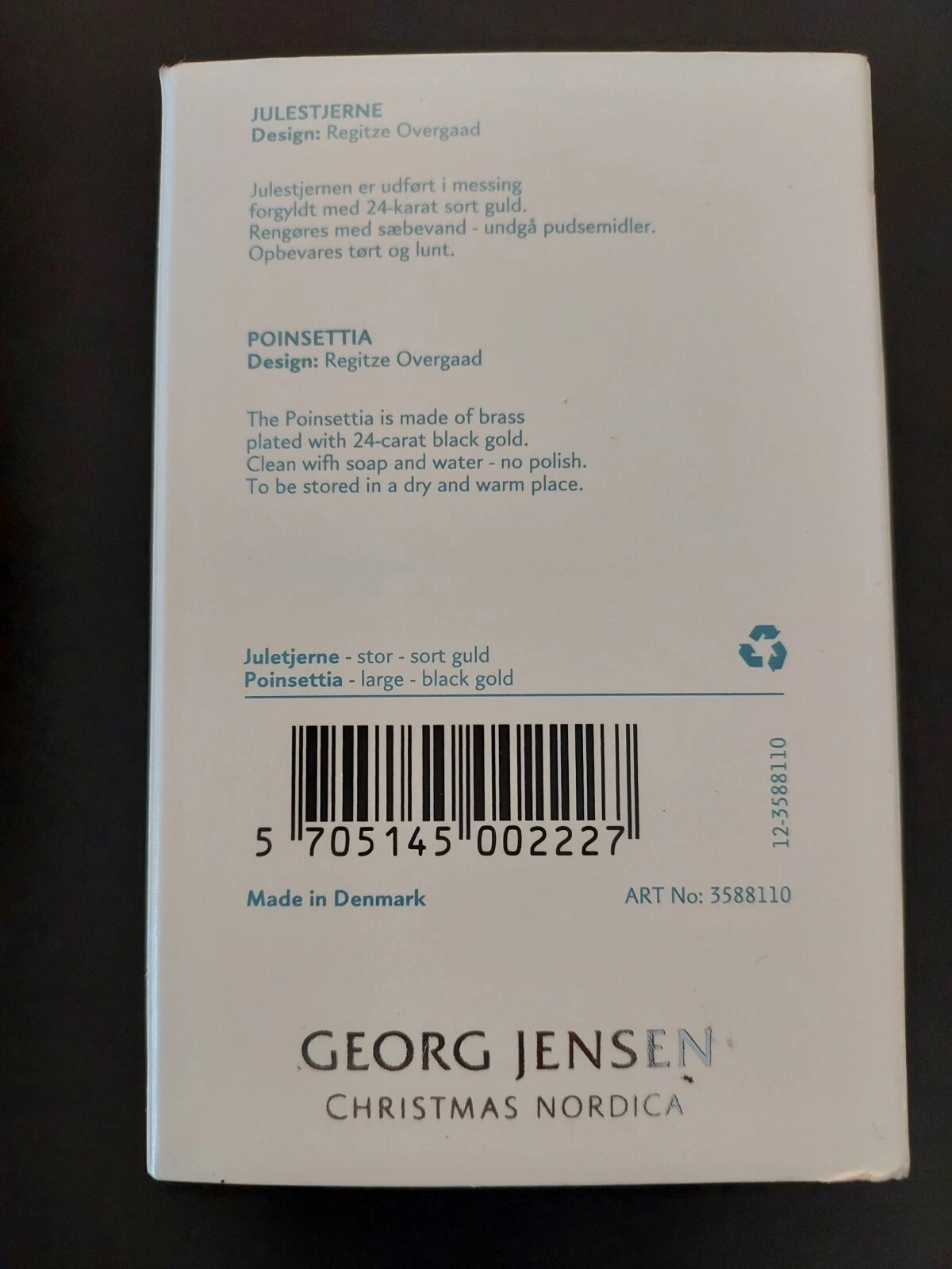 / Georg Jensen Denmark 24 Carat Black Gold Plated Christmas Nordica Star