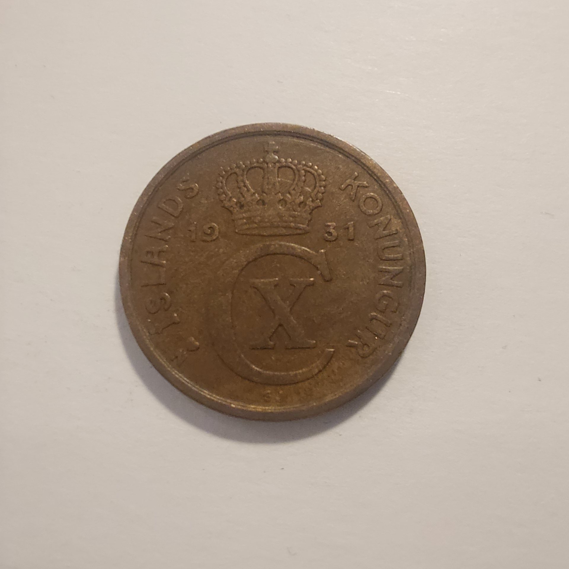 This is an Icelandic 2 aurar coin, issued during the reign of King Christian X (as King of Iceland under the Danish union). Struck at the Copenhagen Mint, it weighs 2 grams and measures 19 mm in diameter with a reeded edge.