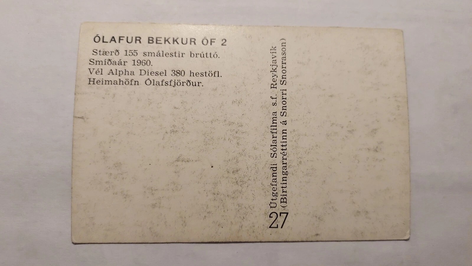 Iceland Vintage Ship Postcard – Card – Olafur Bekkur OF 2