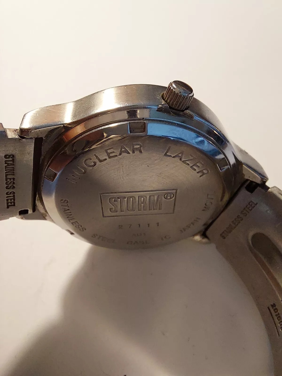 / Vintage STORM Nuclear Lazer Stainless Steel Black Dial Japan Watch
