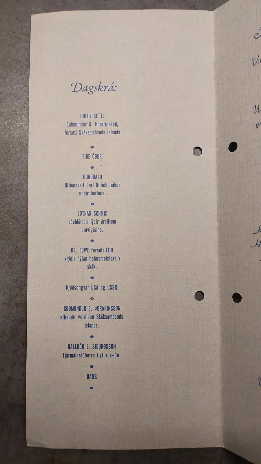 / WCC 1972 – Fischer vs. Spassky Conclusional Banquet Menu – Laugardalshjoll