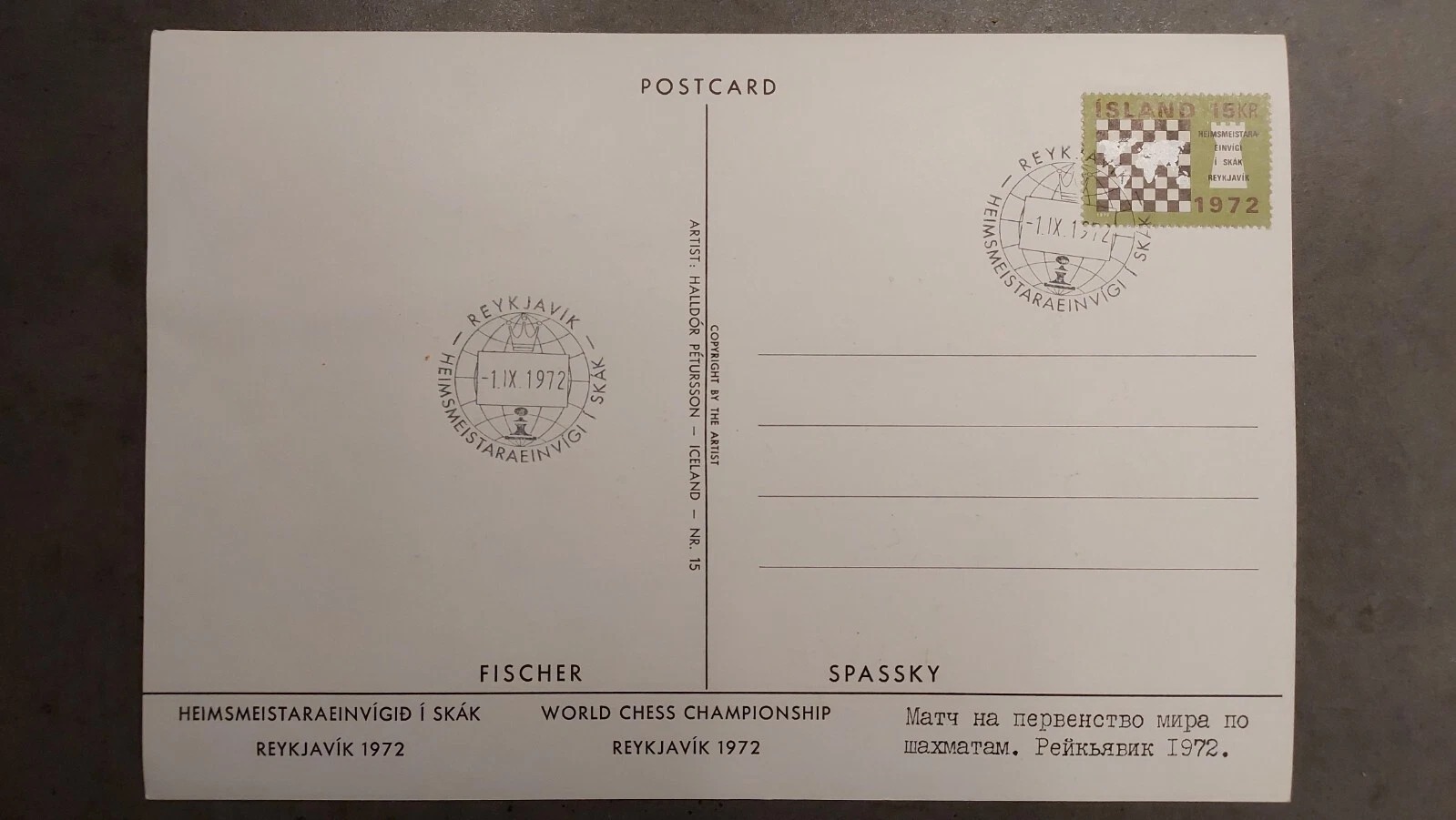 World chess championship 1972 – Bobby Fischer vs. Spassky large postcard Iceland