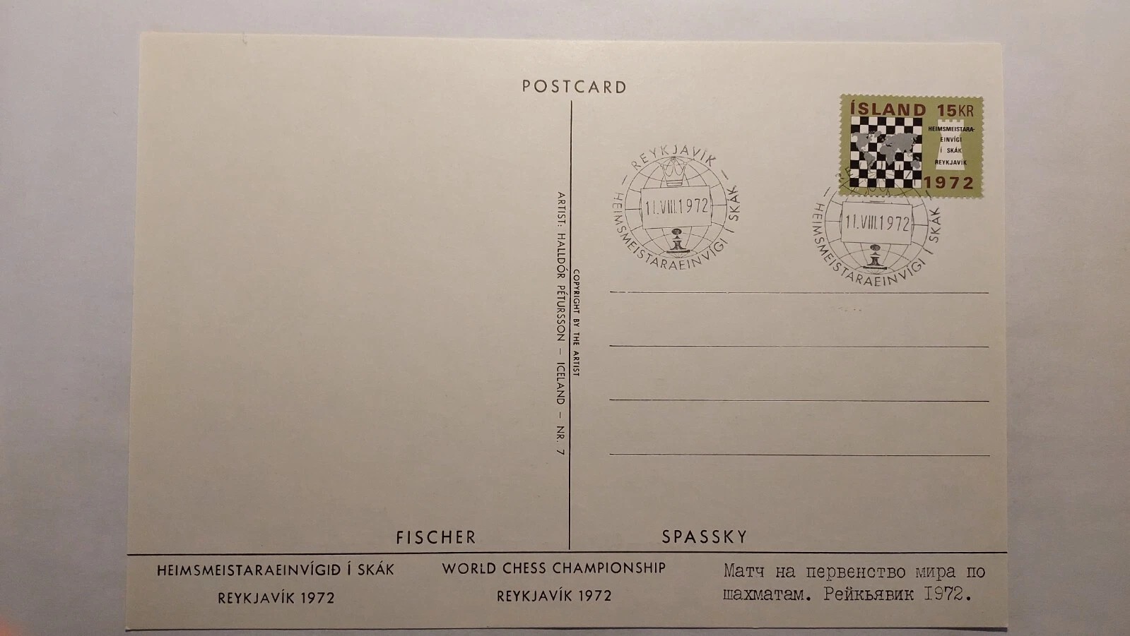 World chess championship 1972 – Bobby Fischer vs. Spassky large postcard Iceland quantity