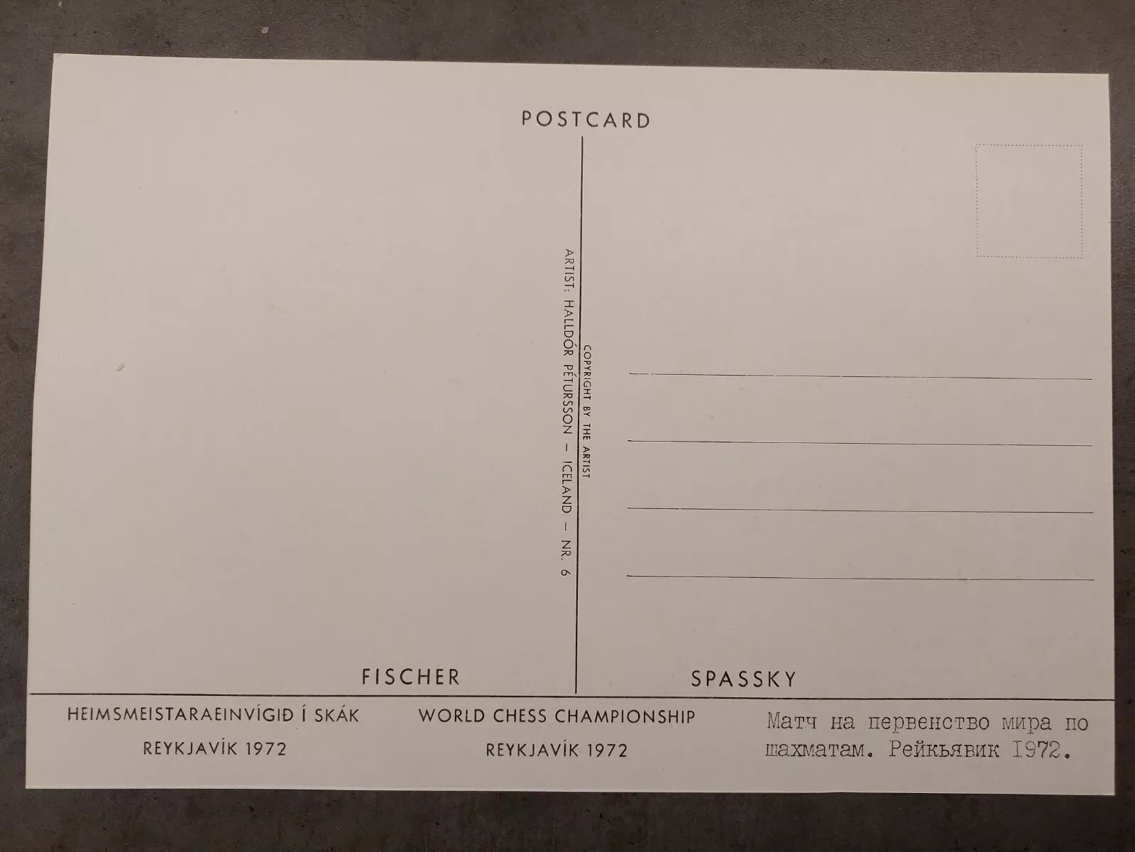 World chess championship 1972 – Bobby Fischer vs. Spassky large postcard Iceland