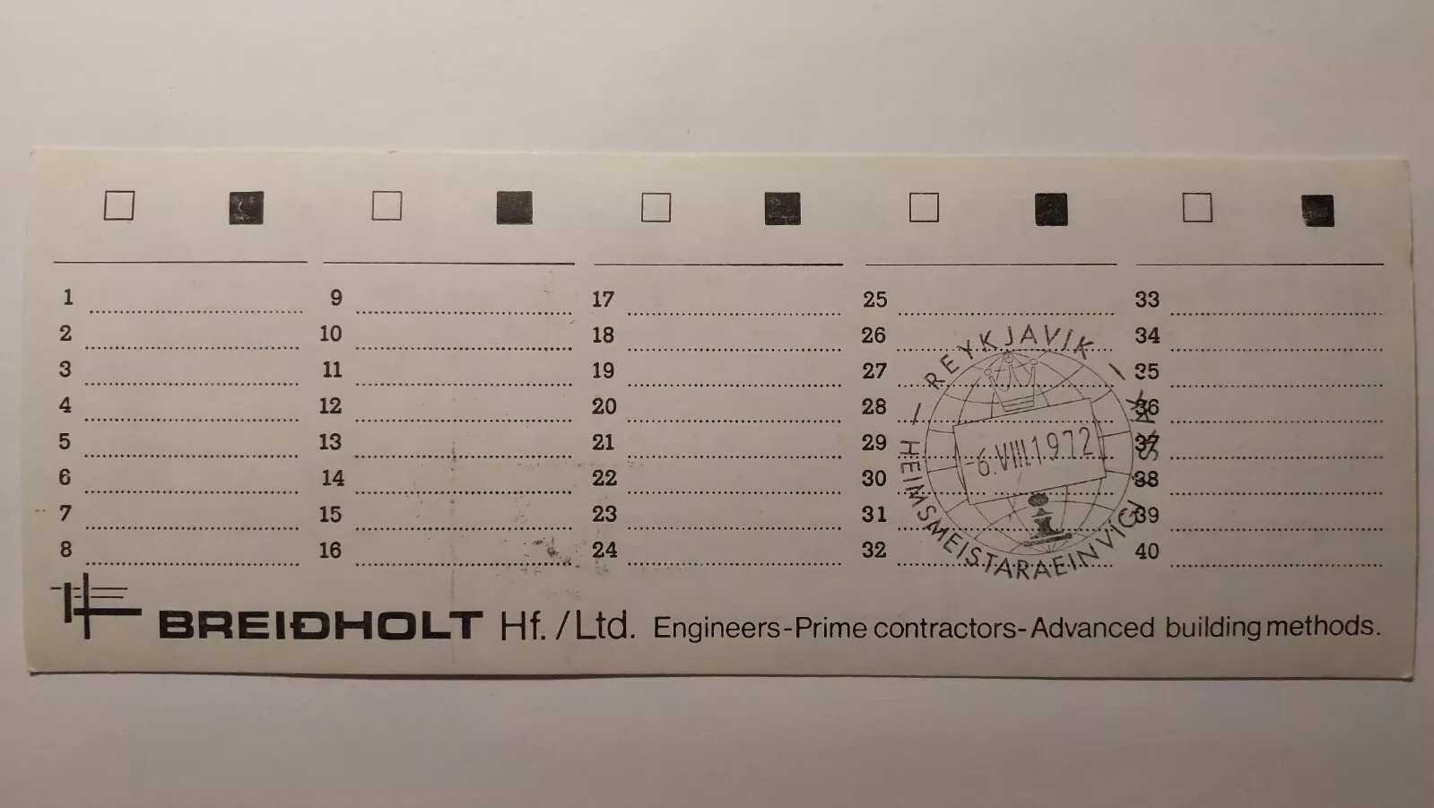 World chess championship 1972 – Fischer vs. Spassky Ticket NO 19 – Iceland